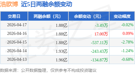 证券之星消息,4月17日,浩欧博(688656)融资买入684.77万元,融资偿还688.26万元,融资净卖出3.49万元,融资余额1.88亿元。