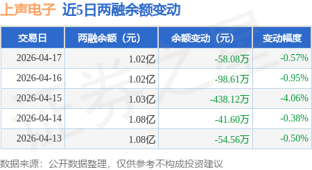 证券之星消息,4月17日,上声电子(688533)融资买入315.6万元,融资偿还378.09万元,融资净卖出62.49万元,融资余额1.02亿元。