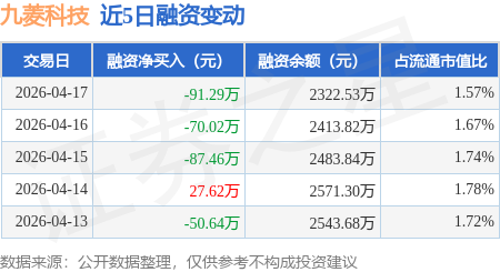 证券之星消息,4月17日,九菱科技(920505)融资买入340.39万元,融资偿还431.68万元,融资净卖出91.29万元,融资余额2322.53万元。