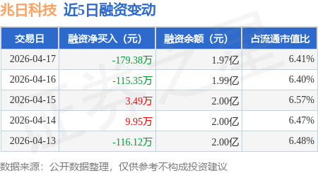 证券之星消息,4月17日,兆日科技(300333)融资买入272.52万元,融资偿还451.91万元,融资净卖出179.38万元,融资余额1.97亿元,近20个交易日中有11个交易日出现融资净买入。