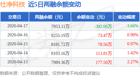 证券之星消息,4月17日,仕净科技(301030)融资买入936.92万元,融资偿还1239.0万元,融资净卖出302.08万元,融资余额7953.11万元。