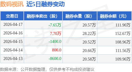 证券之星消息,4月17日,数码视讯(300079)融资买入1374.77万元,融资偿还1824.31万元,融资净卖出449.54万元,融资余额5.76亿元。