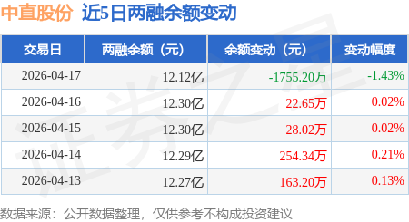 证券之星消息,4月17日,中直股份(600038)融资买入1654.9万元,融资偿还3405.72万元,融资净卖出1750.82万元,融资余额12.03亿元,近20个交易日中有11个交易日出现融资净买入。
