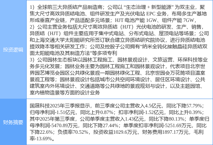 该股为光伏,园林,异质结电池HJT概念热股,当日光伏概念上涨1.32%,园林概念上涨0.96%,异质结电池HJT概念上涨0.82%。