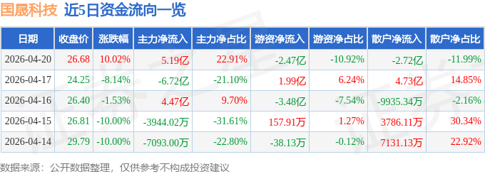 4月20日的资金流向数据方面,主力资金净流入5.19亿元,占总成交额22.91%,游资资金净流出2.47亿元,占总成交额10.92%,散户资金净流出2.72亿元,占总成交额11.99%。