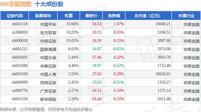 资金流向方面,800非银(399966)指数成份股当日主力资金净流出合计9.03亿元,游资资金净流入合计3.23亿元,散户资金净流入合计5.79亿元。成份股资金流向详情见下表: