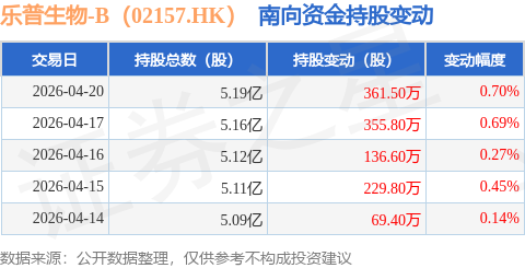 证券之星消息,4月20日南向资金增持361.5万股乐普生物-B(02157.HK)。近5个交易日中,获南向资金增持的有5天,累计净增持1153.1万股。近20个交易日中,获南向资金增持的有15天,累计净增持2372.9万股。截至目前,南向资金持有乐普生物-B(02157.HK)5.19亿股,占公司已发行普通股的28.77%。