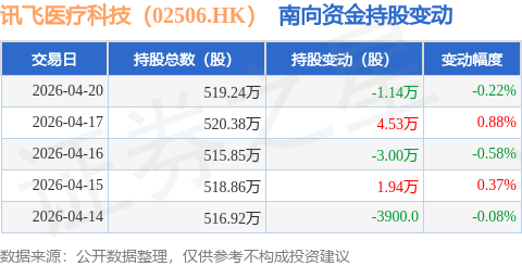 证券之星消息,4月20日南向资金减持1.14万股讯飞医疗科技(02506.HK)。近5个交易日中,获南向资金增持的有2天,累计净增持1.93万股。近20个交易日中,获南向资金减持的有10天,累计净减持11.69万股。截至目前,南向资金持有讯飞医疗科技(02506.HK)519.24万股,占公司已发行普通股的6.71%。