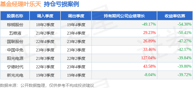 叶乐天管理的建信民丰回报混合基金在18年2季度买入棕榈股份,在持有1年又2个季度后在19年4季度卖出。持有期间的估算收益率为-54.3%,持有期间棕榈股份在2018年到2019年的年报营业总收入降幅为49.17%。