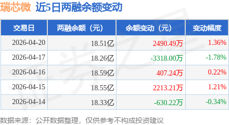 证券之星消息,4月20日,瑞芯微(603893)融资买入1.92亿元,融资偿还1.62亿元,融资净买入2993.82万元,融资余额18.42亿元。