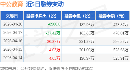 证券之星消息,4月20日,中公教育(002607)融资买入2086.75万元,融资偿还1667.09万元,融资净买入419.67万元,融资余额12.1亿元。