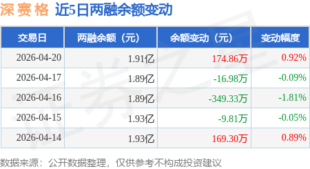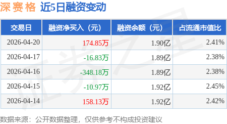 证券之星消息,4月20日,深 赛 格(000058)融资买入465.11万元,融资偿还290.27万元,融资净买入174.85万元,融资余额1.9亿元。