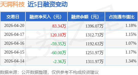 证券之星消息,4月20日,天润科技(920564)融资买入257.5万元,融资偿还174.16万元,融资净买入83.34万元,融资余额1396.07万元。