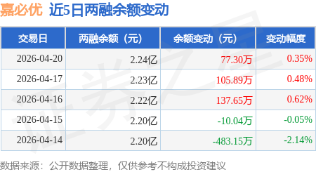 证券之星消息,4月20日,嘉必优(688089)融资买入646.76万元,融资偿还567.32万元,融资净买入79.44万元,融资余额2.24亿元,近3个交易日已连续净买入累计324.91万元。