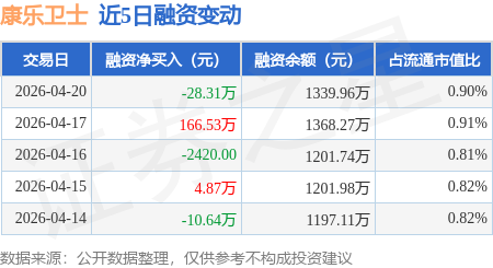 证券之星消息,4月20日,康乐卫士(920575)融资买入2.23万元,融资偿还30.54万元,融资净卖出28.31万元,融资余额1339.96万元。