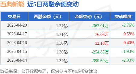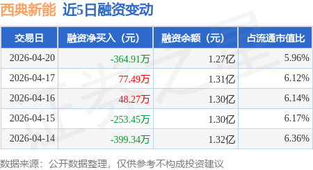 证券之星消息,4月20日,西典新能(603312)融资买入237.04万元,融资偿还601.95万元,融资净卖出364.91万元,融资余额1.27亿元。