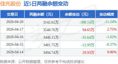 证券之星消息,4月20日,佳先股份(920489)融资买入154.65万元,融资偿还552.78万元,融资净卖出398.14万元,融资余额3142.62万元。