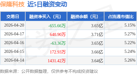 证券之星消息,4月20日,保隆科技(603197)融资买入465.55万元,融资偿还1121.21万元,融资净卖出655.66万元,融资余额3.65亿元。