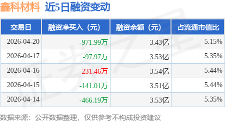 证券之星消息,4月20日,鑫科材料(600255)融资买入1176.24万元,融资偿还2148.23万元,融资净卖出971.99万元,融资余额3.43亿元。