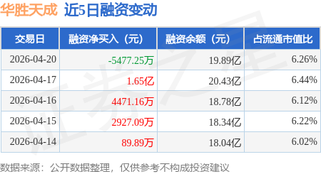 证券之星消息,4月20日,华胜天成(600410)融资买入4.67亿元,融资偿还5.22亿元,融资净卖出5477.25万元,融资余额19.89亿元,近20个交易日中有11个交易日出现融资净买入。