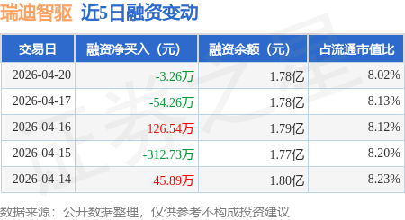 证券之星消息,4月20日,瑞迪智驱(301596)融资买入446.73万元,融资偿还449.99万元,融资净卖出3.26万元,融资余额1.78亿元。