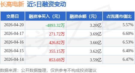 证券之星消息,4月20日,长高电新(002452)融资买入4129.52万元,融资偿还9022.84万元,融资净卖出4893.32万元,融资余额3.2亿元,近20个交易日中有11个交易日出现融资净买入。