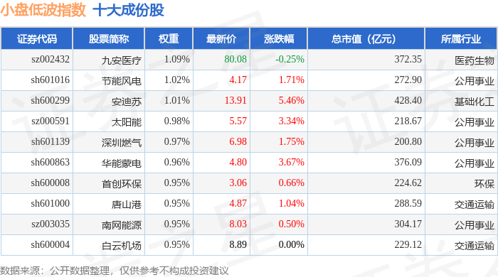 小盘低波(399408)指数十大成份股详情如下: