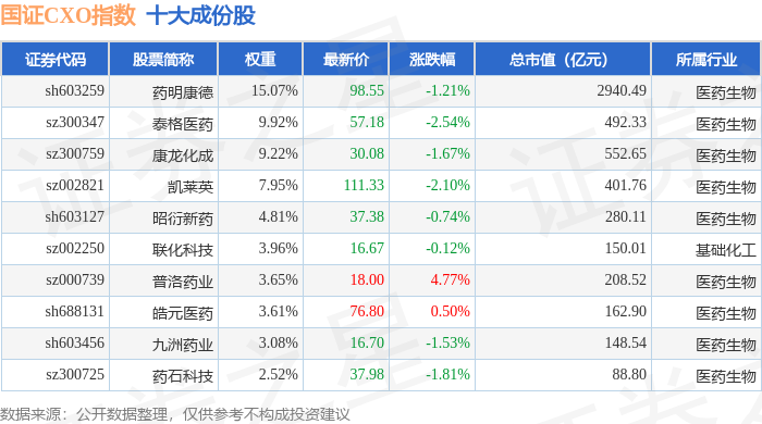 证券之星消息,4月21日,国证CXO(980120)指数报收于1818.66点,跌1.12%,成交109.93亿元,换手率1.82%。当日该指数成份股中,上涨的有7家,普洛药业以4.77%的涨幅领涨,下跌的有33家,奥浦迈以4.66%的跌幅领跌。