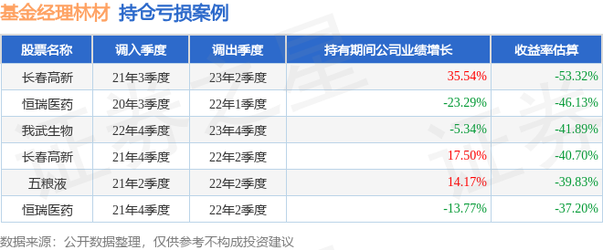 林材管理的前海联合国民健康混合A基金在21年3季度买入长春高新,在持有1年又3个季度后在23年2季度卖出。持有期间的估算收益率为-53.32%,持有期间长春高新在2021年到2023年的年报营业总收入增幅达35.54%。