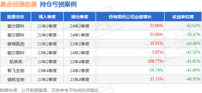 赵蓓管理的工银前沿医疗股票A基金在21年2季度买入爱尔眼科,在持有3年又0个季度后在24年2季度卖出。持有期间的估算收益率为-63.63%,持有期间爱尔眼科在2021年到2024年的年报归属净利润增幅达53.06%。