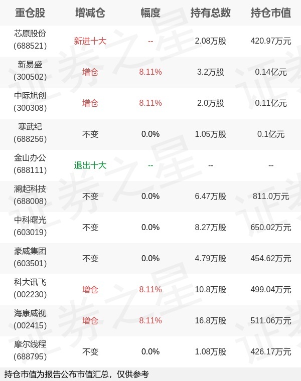 证券之星消息,4月22日易方达基金旗下张湛管理的易方达中证人工智能主题交易型开放式指数基金联接基金公布一季报,近1年净值增长率84.29%。与上一季度相比,该基金前十大重仓股新增芯原股份;并对新易盛增仓0.24万股,为该基金第一大重仓股;金山办公等退出前十大重仓股;详细数据如下: