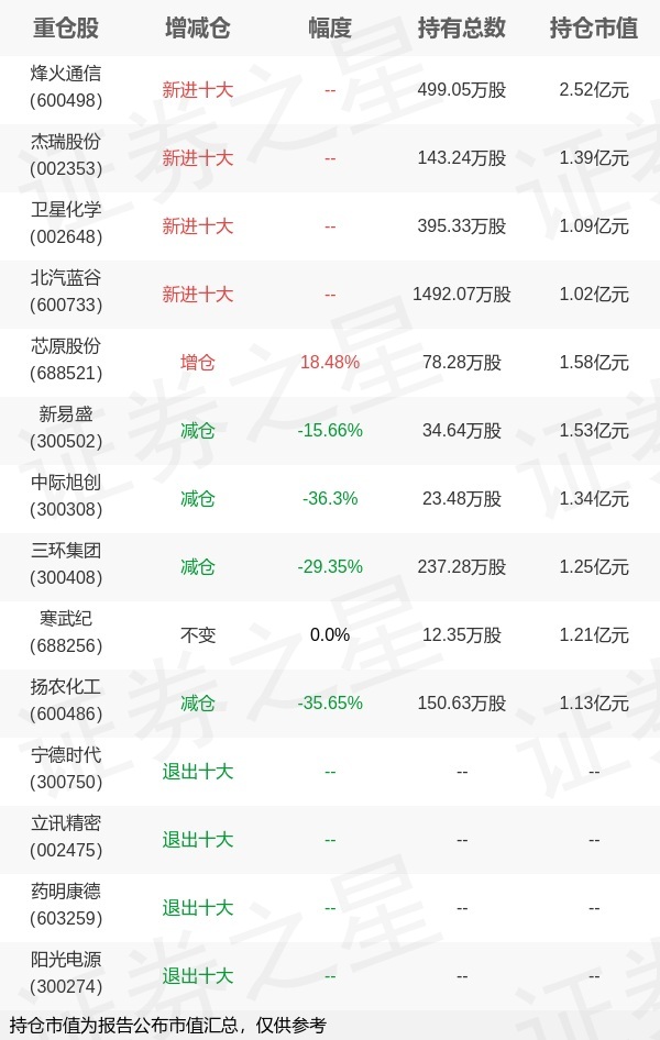 证券之星消息,4月22日易方达基金旗下张清华管理的易方达安心回报债券型基金公布一季报,近1年净值增长率11.28%。与上一季度相比,该基金前十大重仓股新增烽火通信,杰瑞股份,卫星化学,北汽蓝谷;其中烽火通信持仓占比1.89%,为该基金第一大重仓股;宁德时代,立讯精密,药明康德,阳光电源等退出前十大重仓股;详细数据如下: