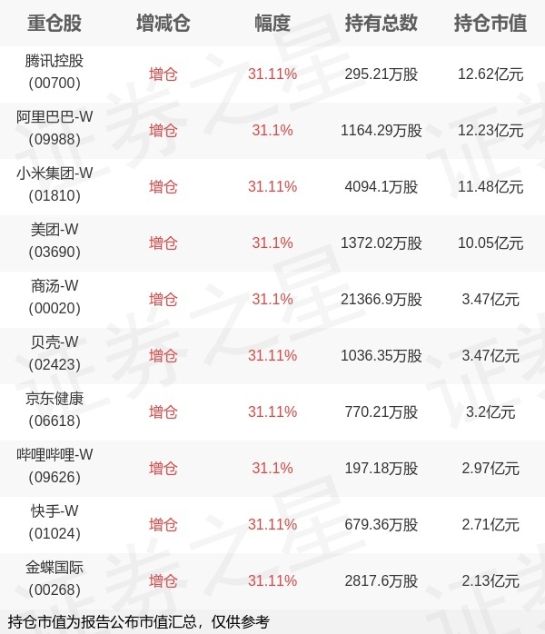 证券之星消息,4月22日易方达基金旗下李栩 张泽峰管理的易方达中证港股通互联网交易型开放式指数基金公布一季报,近1年净值增长率-4.84%。并对腾讯控股增仓70.04万股,为该基金第一大重仓股;详细数据如下: