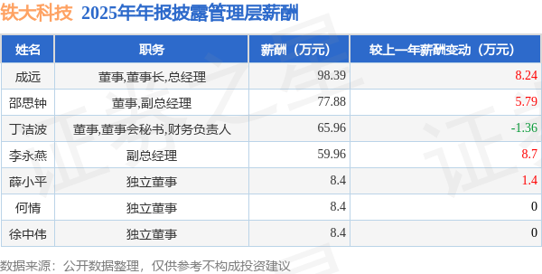 证券之星消息,铁大科技发布2025年年报,数据显示:公司主营收入3.39亿元,同比增21.14%。归母净利润为7061.46万元,同比增23.9%。扣非净利润为6745.81万元,同比增30.08%。当年公司员工总数235人,同比增5.38%。人均薪酬28.39万元(注:"人均薪酬"根据定期报告中"应付职工薪酬"附注的本期增加值 / 员工总数计算而来),同比减0.53%。人均创收144.31万元,同比增14.96%。人均创利30.05万元,同比增17.58%。其中管理层薪酬总额为327.39万元,同比上一年减15.42%,薪酬最高的为董事,董事长,总经理成远,薪酬98.39万元。