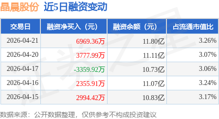 证券之星消息,4月21日,晶晨股份(688099)融资买入1.56亿元,融资偿还8591.98万元,融资净买入6969.36万元,融资余额11.8亿元。