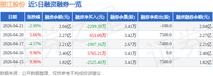 证券之星消息,截至2026年4月21日收盘,丽江股份(002033)报收于10.69元,下跌2.99%,换手率19.43%,成交量106.77万手,成交额11.77亿元。