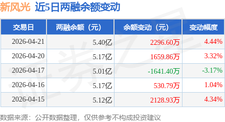 证券之星消息,4月21日,新风光(688663)融资买入6210.4万元,融资偿还3910.78万元,融资净买入2299.63万元,融资余额5.4亿元,近20个交易日中有12个交易日出现融资净买入。