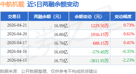 证券之星消息,4月21日,中航机载(600372)融资买入6568.91万元,融资偿还5337.09万元,融资净买入1231.82万元,融资余额16.97亿元,近3个交易日已连续净买入累计2989.27万元。