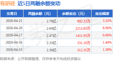 证券之星消息,4月21日,有研硅(688432)融资买入2351.28万元,融资偿还1446.93万元,融资净买入904.36万元,融资余额2.77亿元,近3个交易日已连续净买入累计4414.04万元。