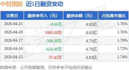 证券之星消息,4月21日,中材国际(600970)融资买入2196.85万元,融资偿还2205.51万元,融资净卖出8.66万元,融资余额4.82亿元,近20个交易日中有11个交易日出现融资净买入。