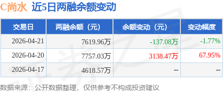 证券之星消息,4月21日,C尚水(301513)融资买入5299.24万元,融资偿还5436.32万元,融资净卖出137.08万元,融资余额7619.96万元。