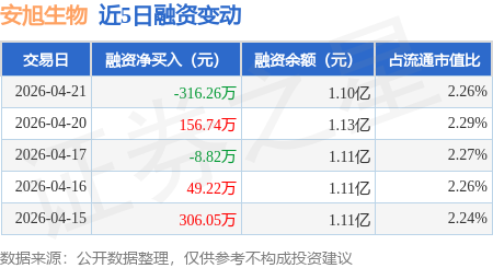 证券之星消息,4月21日,安旭生物(688075)融资买入214.8万元,融资偿还531.07万元,融资净卖出316.26万元,融资余额1.1亿元。