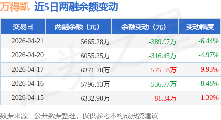 证券之星消息,4月21日,万得凯(301309)融资买入588.03万元,融资偿还978.0万元,融资净卖出389.97万元,融资余额5665.28万元。