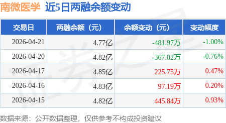 证券之星消息,4月21日,南微医学(688029)融资买入751.84万元,融资偿还1241.76万元,融资净卖出489.93万元,融资余额4.73亿元。