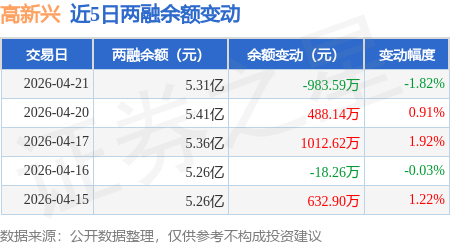 证券之星消息,4月21日,高新兴(300098)融资买入1314.01万元,融资偿还2297.24万元,融资净卖出983.23万元,融资余额5.31亿元。