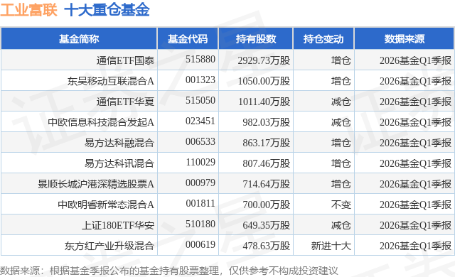 重仓工业富联的前十大公募基金请见下表: