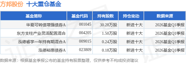 重仓方邦股份的公募基金请见下表: