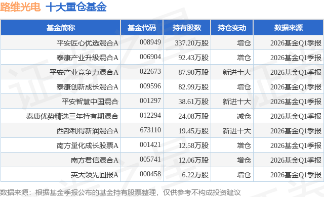 重仓路维光电的前十大公募基金请见下表: