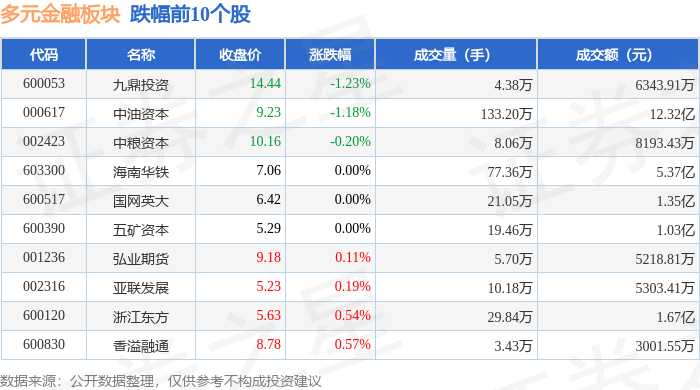 从资金流向上来看,当日多元金融板块主力资金净流入3741.8万元,游资资金净流出2939.84万元,散户资金净流出801.96万元。多元金融板块个股资金流向见下表: