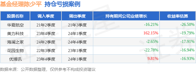陈少平管理的广发改革混合基金在21年2季度买入华夏航空,在持有1个季度后在21年3季度卖出。持有期间的估算收益率为-26.5%,持有期间华夏航空在2020年到2021年的年报营业总收入降幅为16.21%。